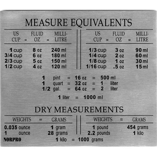 NorProEssential Conversions at a Glance The Norpro 3062 Stainless Steel Magnet is a kitchen reference essential that displays measurement equivalents an...