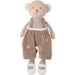 Introducing Maverick, the charming light brown plush bear dressed in adorable brown overalls, a striped shirt, and cream-colored shoes! Whether hes exploring the great indoors or joining your little one on fun adventures, this stylish bear will bring joy and comfort to every moment. 12 inches.