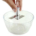 Stainless steel blades cut in both directions and are removable for thorough cleaning.